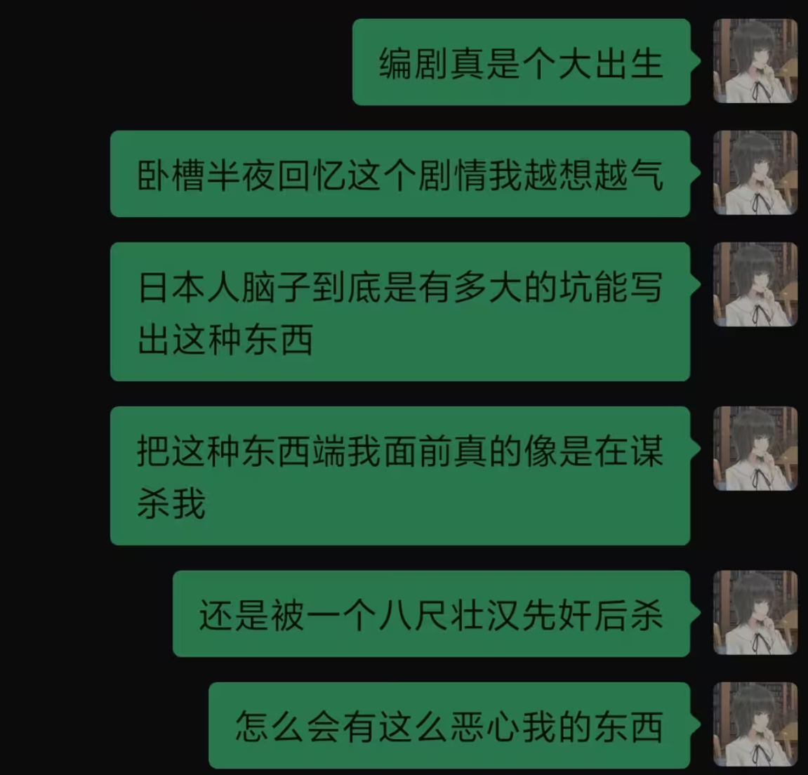 好了气撒完了,上面的一些aoe只是气话,我不负任何责任。但认真来讲我觉得日本人骨子里就是带着一种病态的癫狂感,我看过的大多数日本人的文艺作品都给我这一种感受,能够让人觉得是正常作品的真的很少。