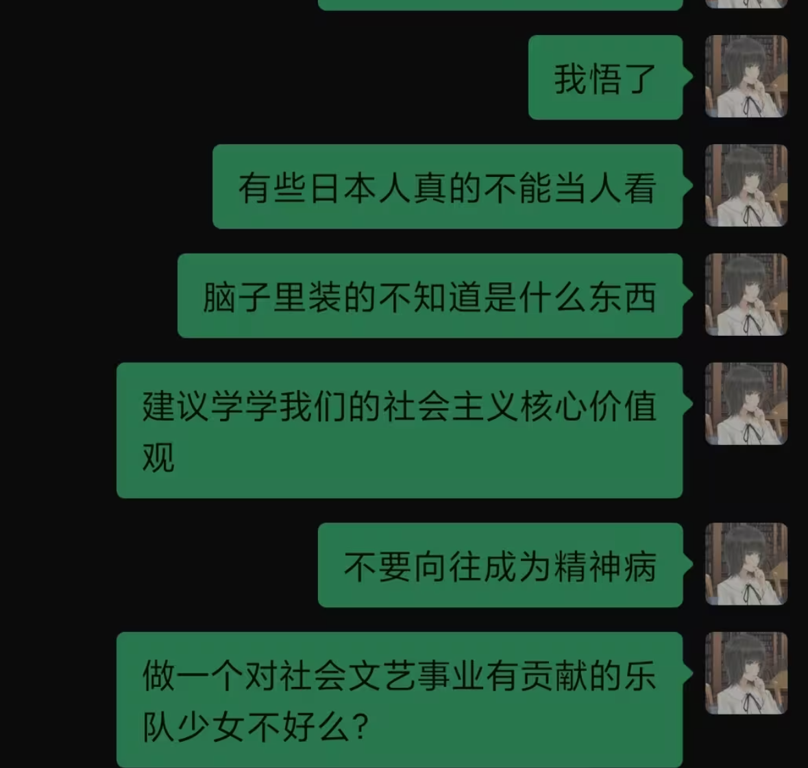 ——理直气壮为一己之私毁了团队的事业、自己混不下去了还有脸嘲讽之前团队里出力最多的人的农村追梦少女(感觉日本人对我们农村人有偏见)。这体现了日本人骨子里就是不知道责任为何物的,难怪出事了只会鞠躬道歉。