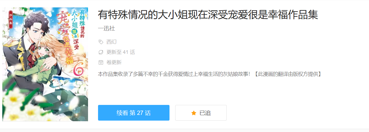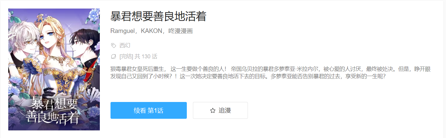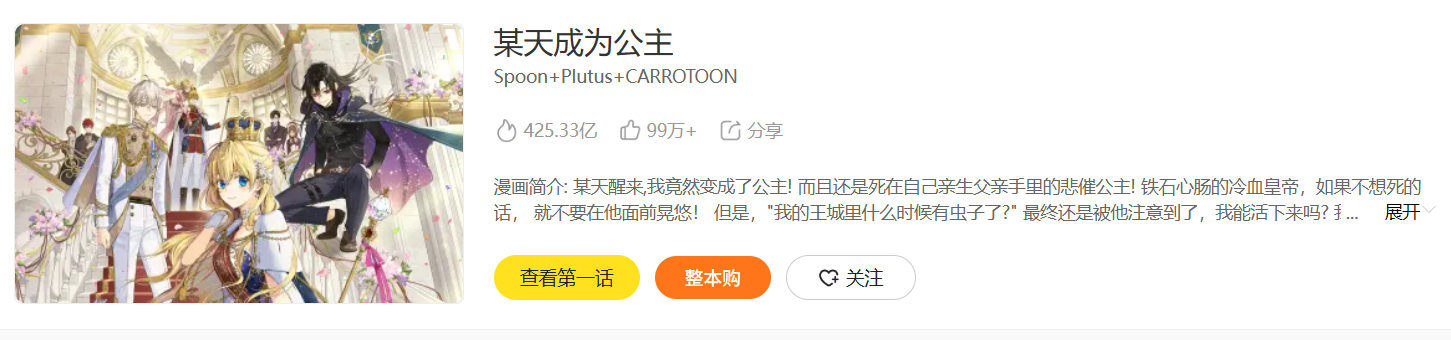 优秀的作品。其实和《某天成为公主》《公爵的契约未婚妻》一样,是在韩漫很喜欢的【现世-异世界】的多世穿越的故事设计下展开的。很适合作为消遣作品阅读。