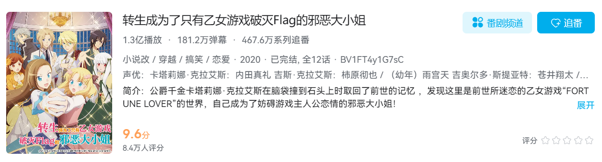 我的朋友林大小姐推荐的作品。只能说林大小姐看乙女向的作品的品味一向很高。这部真的很好看,就是可惜原作已经腰斩了,虽然番剧差不多是把故事讲完了,但不知道这个故事在结局之后的后日谈是真的让人觉得可惜。