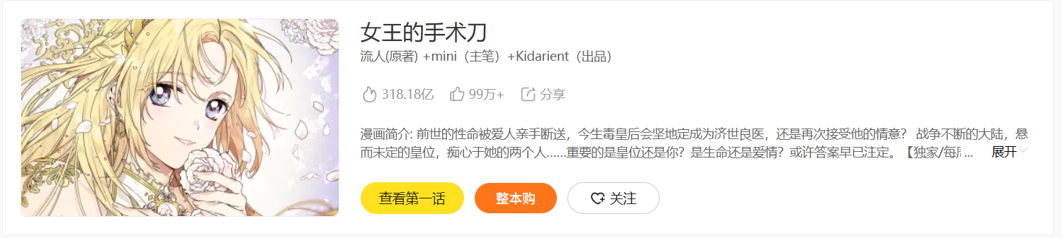 我没搞懂,为什么韩国人能容忍自己写出“女儿的爸爸是某个类似梵蒂冈的宗教国的实权人物,手底下也是有军队的,但是因为被制约所以不得不把自己亲生女儿放在变态伯爵家”里的剧情。尤其是几波剧情转折,真的是过于强行。最让我愤怒的就是剧情上的这个毒点,它只让我感觉韩国人龟完了,很符合我对被驻军的国家的一切想象。所以我捏着鼻子看了40章后发现作者尿性不改后彻底愤怒了,我直接把它和这个作者放到了我的拉黑名单里。