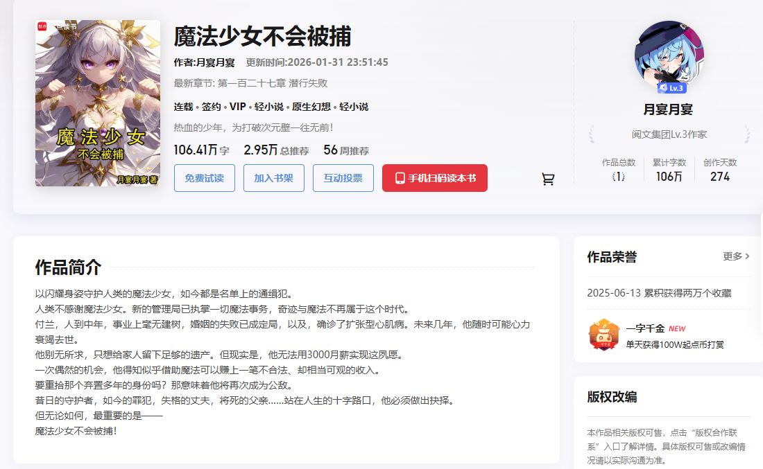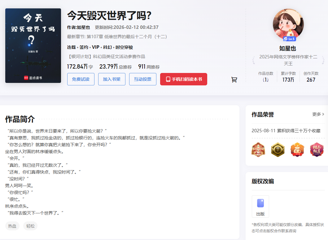 如果它更新得再多点、能保持现在这个质量完结,我会考虑把它放到我的年度满意书单里。